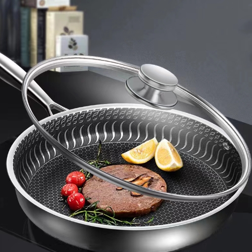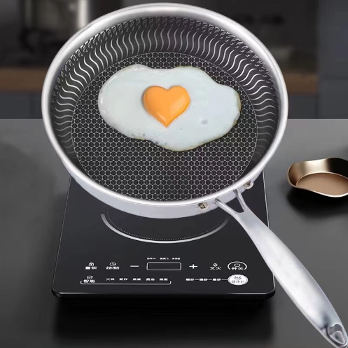 Покрытие из нержавеющей стали: антипригарная стальная сетка с сотовой структурой позволяет легко переворачивать пищу, не прилипая ко дну кастрюли, а также позволяет сэкономить на использовании растительного масла, делая ее более полезной для здоровья. Позвольте вам насладиться процессом приготовления.